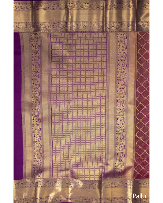 Dual Tone Pinkish Maroon Body With Pinkish Maroon Pallu Kanchivaram Pure Silk