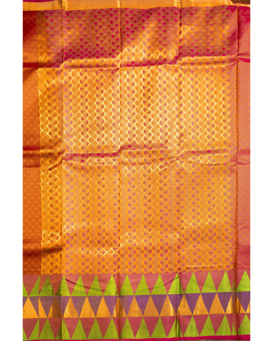 Dual Tone Gold And Rani Pink Tone Body With Green Pallu Kanchivaram Pure Silk