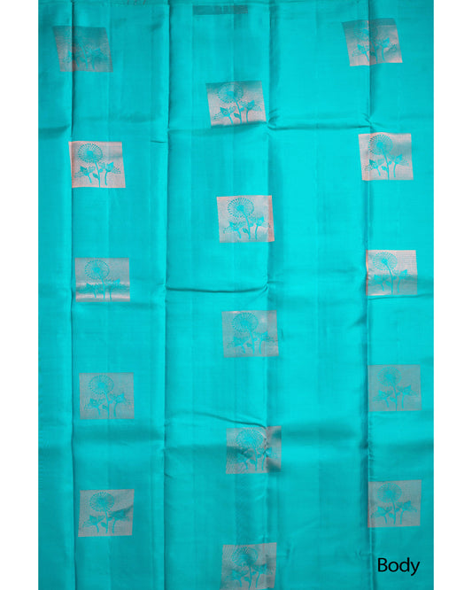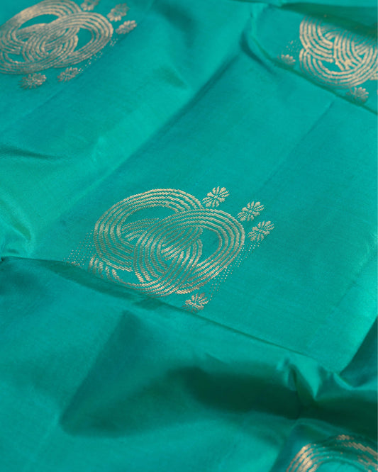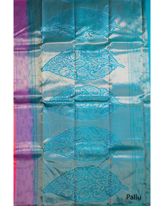 Saffire Green With Rani Pink Pallu Kanchivaram Pure Soft Silk Saree