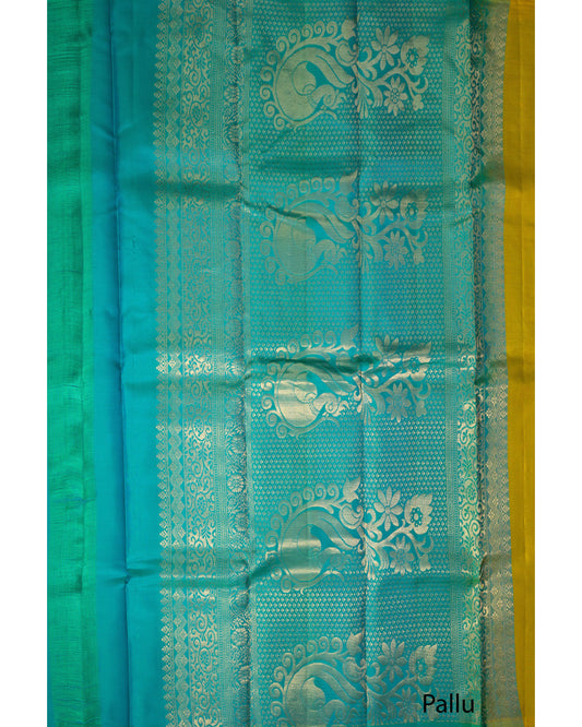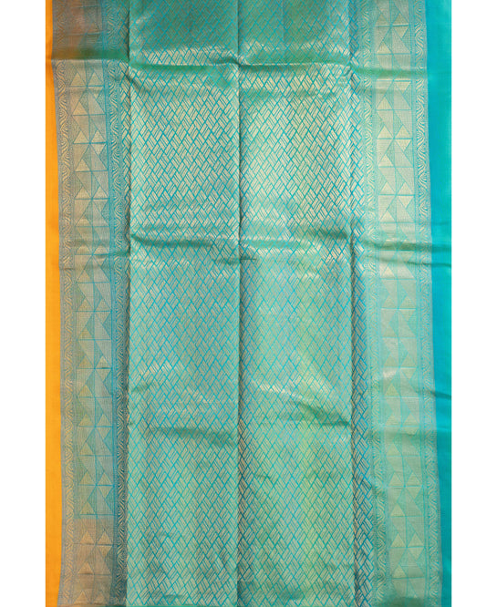 Dark Lemon With Saffire Green Pallu Kanchivaram Pure Soft Silk Saree
