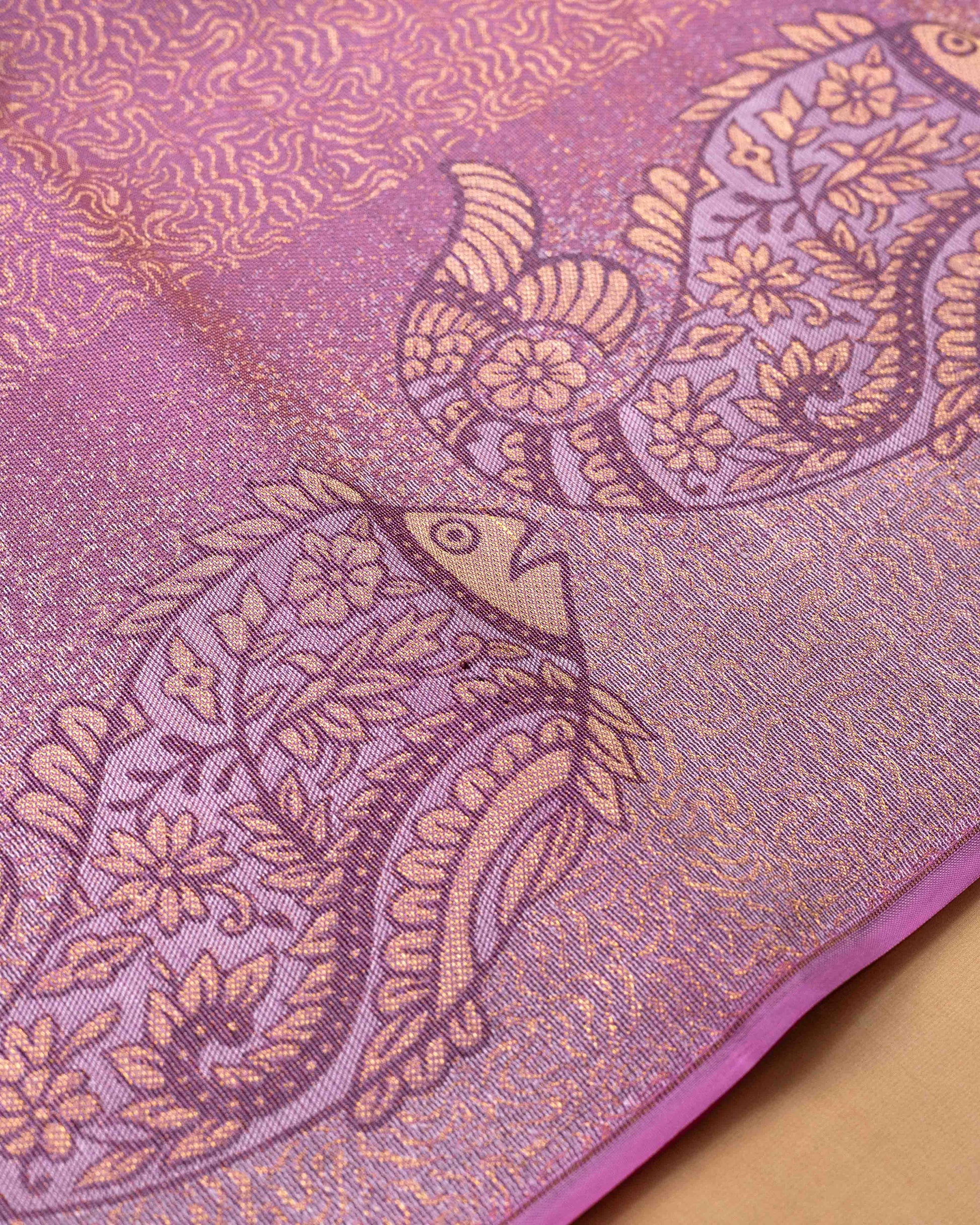 • ELEGANTLY CRAFTED MINI RUDRASH AND TEMPLE ZARI JACQUARD BODY WEDDING SAREE.