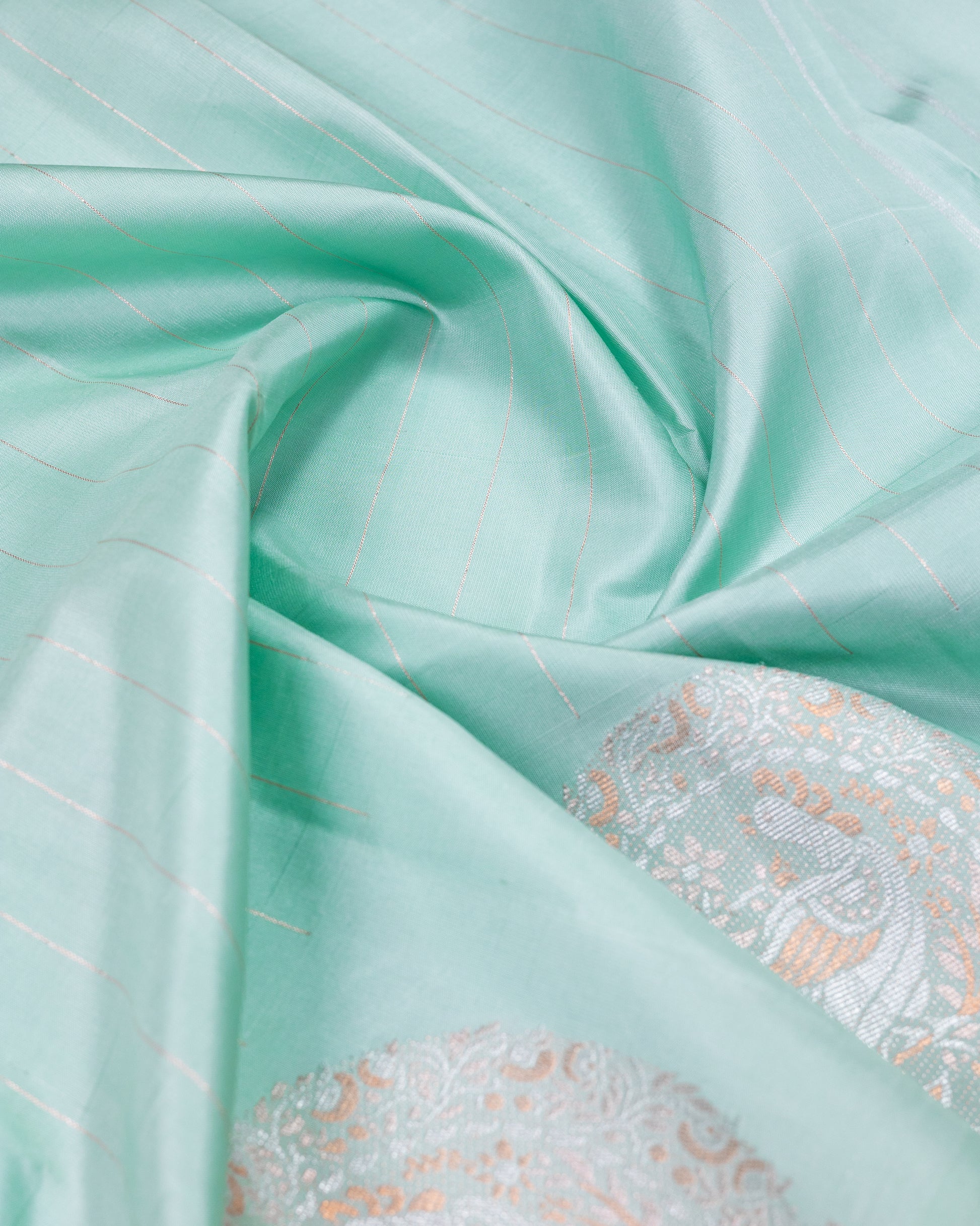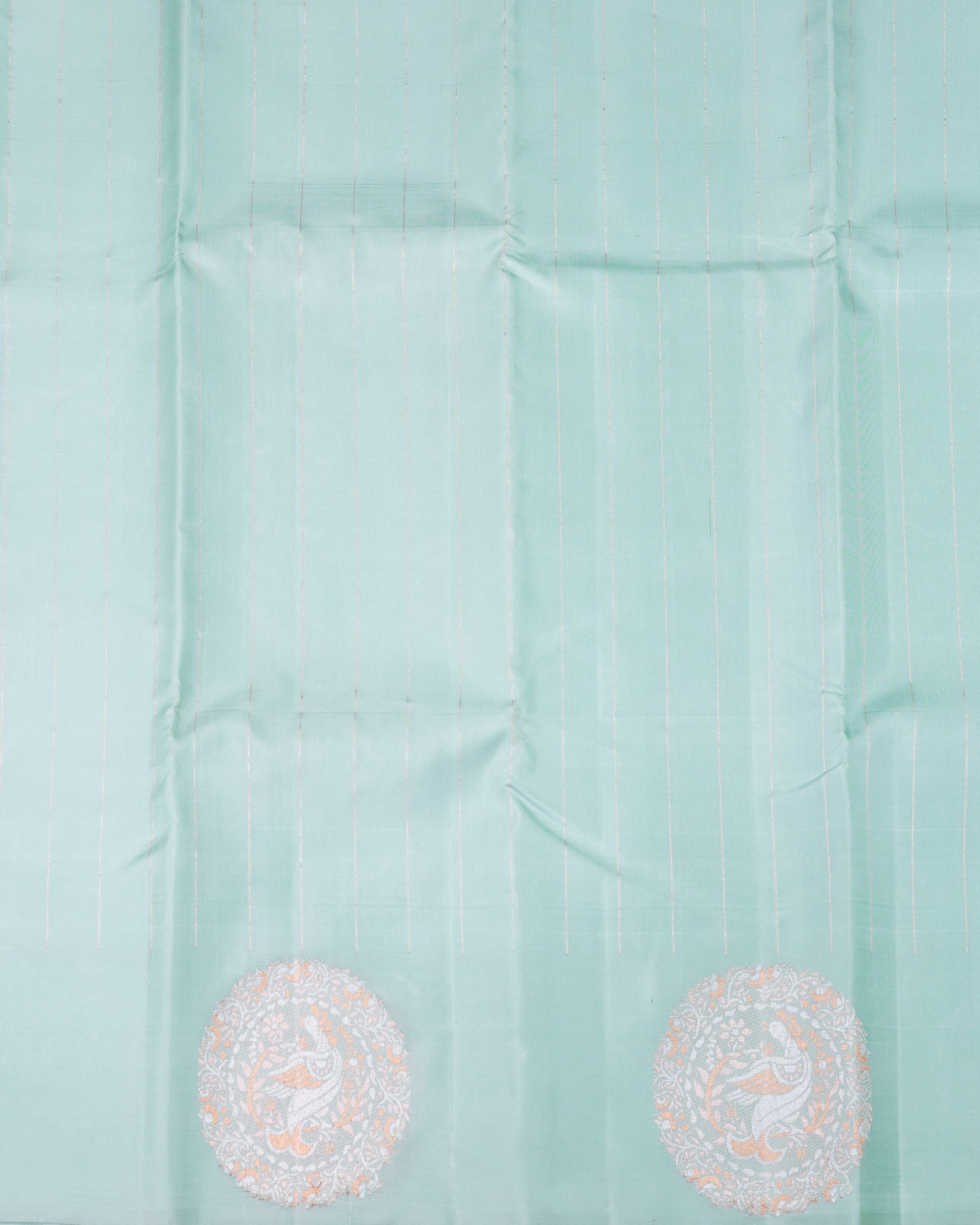 • BANARAS BORDER WITH HORIZONTAL ZARI STRIPE WITH MULTI COLOUR ZARI TREE MOTIF.