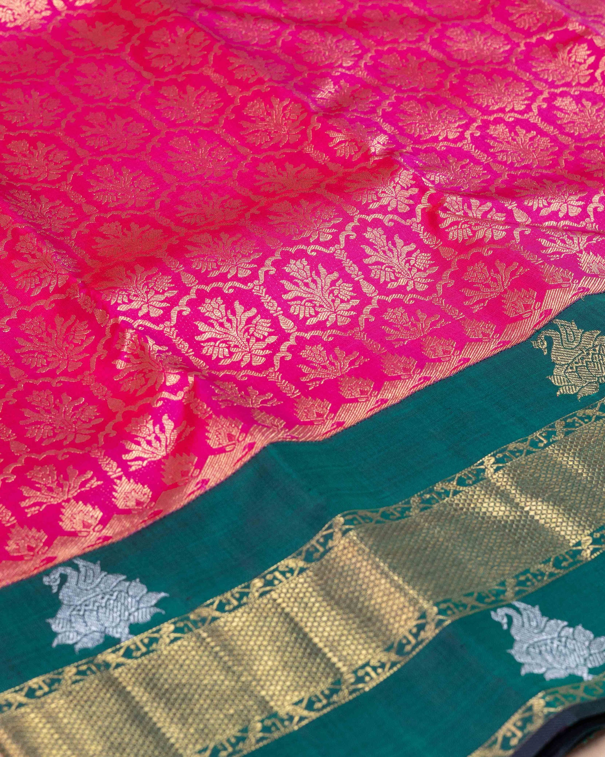 VIBRANT RANI COLOUR BODY WITH BOTTLE GREEN COLOUR BORDER
